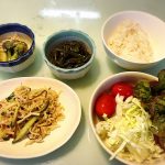 生サラダ⇒生ワカメ⇒切り干し大根のサラダ⇒ブロッコリーとえのきのごま味噌和え⇒ごはん